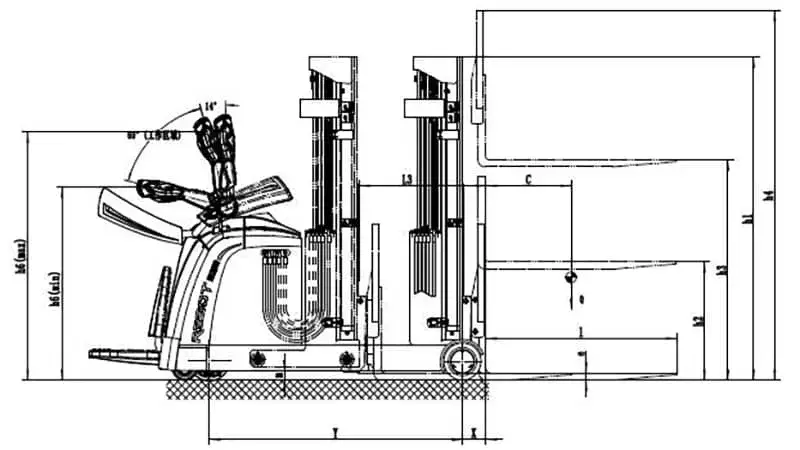 | Высота вил в нижнем положении, h5 (мм) | 2248 | 2348 | 2398 | |